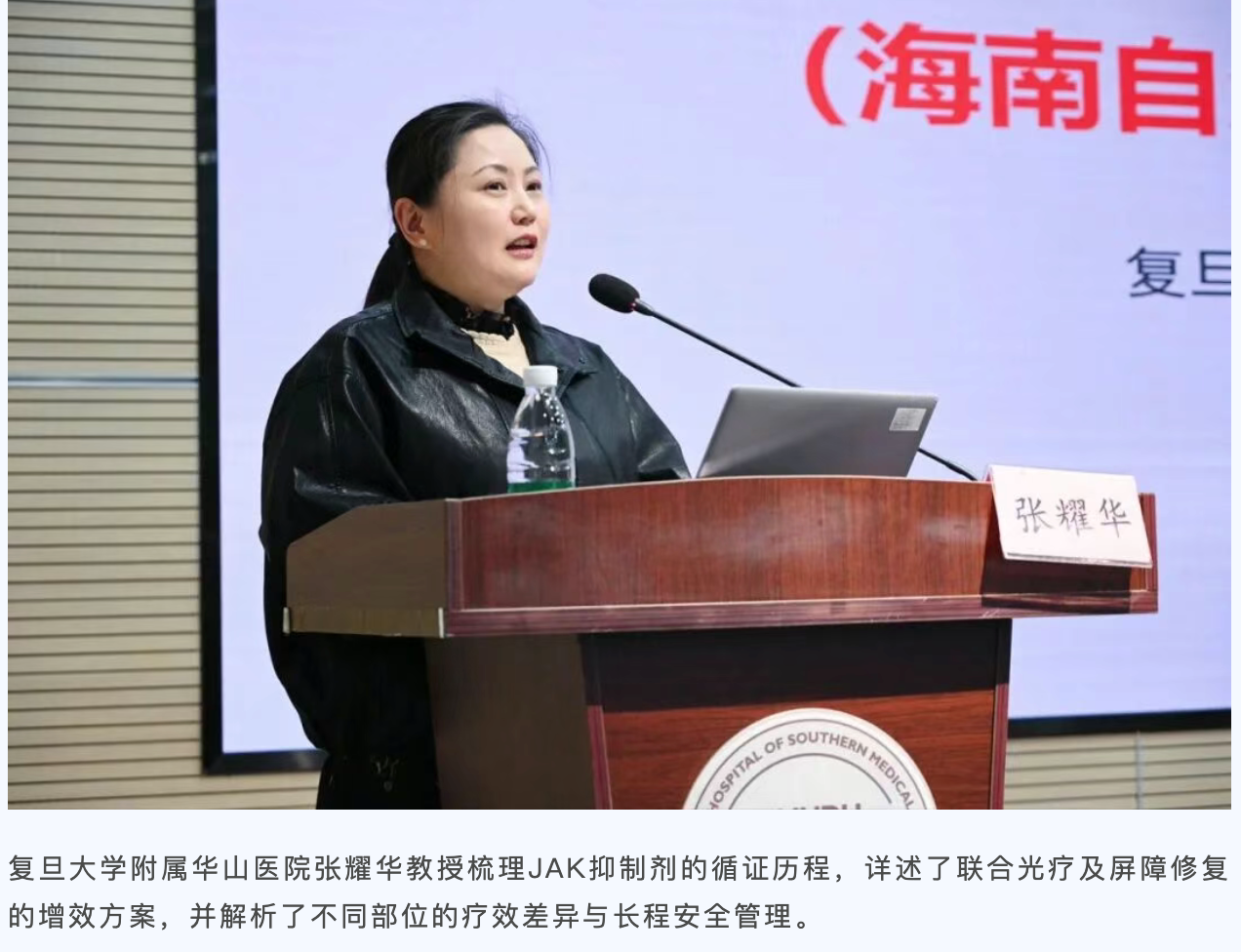 南方医科大学皮肤病医院副院长王芳向在座专家致以诚挚欢迎。她表示,医院以专病建设为抓手,已布局16个专病诊疗方向,其中白癜风专病年门诊量突破2万人次,学科内涵建设与诊疗水平实现质的飞跃。她强调,本次大会将联盟年度总结与高水平学术交流深度融合,贯穿 “以患者为中心、以质量为核心” 的理念,对提升区域皮肤免疫性疾病整体诊疗水平具有里程碑意义,期待联盟同道凝心聚力、乘势而上,在精准诊疗领域再攀高峰、再创佳绩。